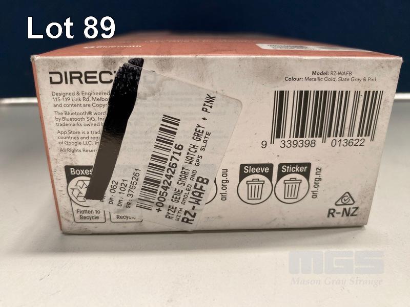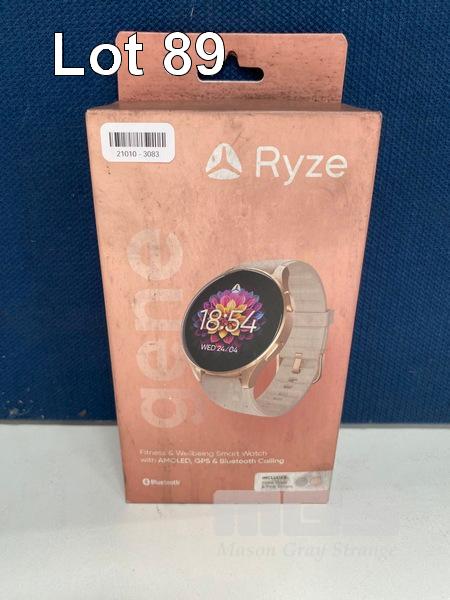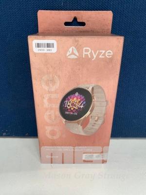 SMART WATCH, RYZE GENE - METALLIC GOLD WITH SLATE GREY + PINK STRAP, RZ-WAFB (RRP $248) (BOXED) (SUBJECT TO INSURANCE CLAIM)