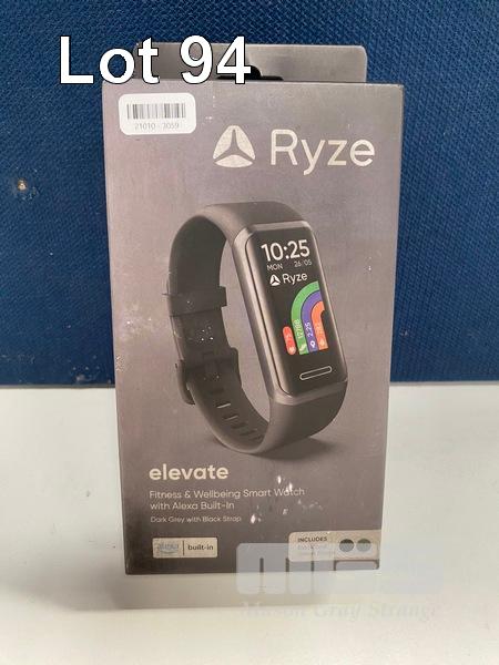 SMART WATCH, RYZE ELEVATE FITNESS & WELLBEING - DARK GREY WITH BLACK STRAP, RZ-ELBK (RRP $88) (BOXED) (SUBJECT TO INSURANCE CLAIM)