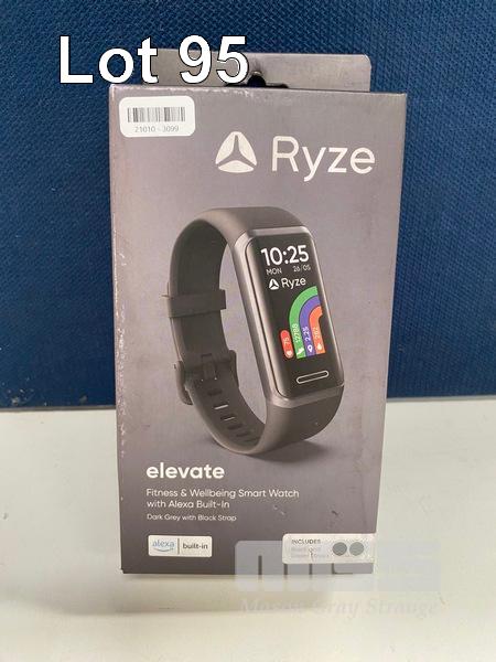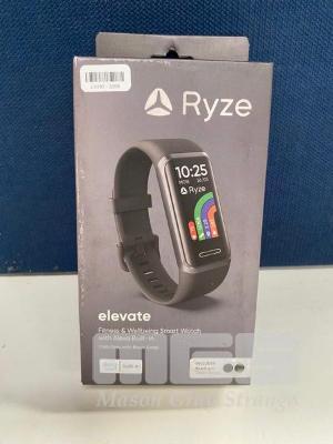 SMART WATCH, RYZE ELEVATE FITNESS & WELLBEING - DARK GREY WITH BLACK STRAP, RZ-ELBK (RRP $88) (BOXED) (SUBJECT TO INSURANCE CLAIM)