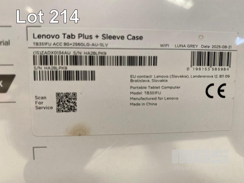 TABLET, LENOVO TAB PLUS 256GB, 11.5 INCH, TB351FU (RRP $549) (BOXED) (SUBJECT TO INSURANCE CLAIM) S/N:HA2BLPK9