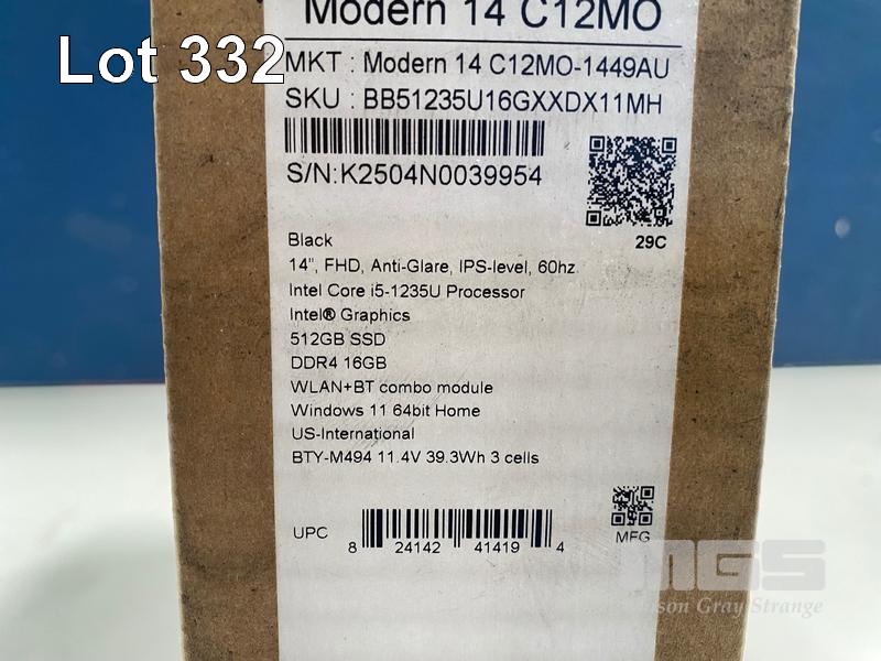 LAPTOP, MSI MODERN 14 C12MO-1449AU NBK BLACK, CORE i5 1235U, 16GB RAM, 512GB SSD, 14 INCH, WINDOWS 11 HOME