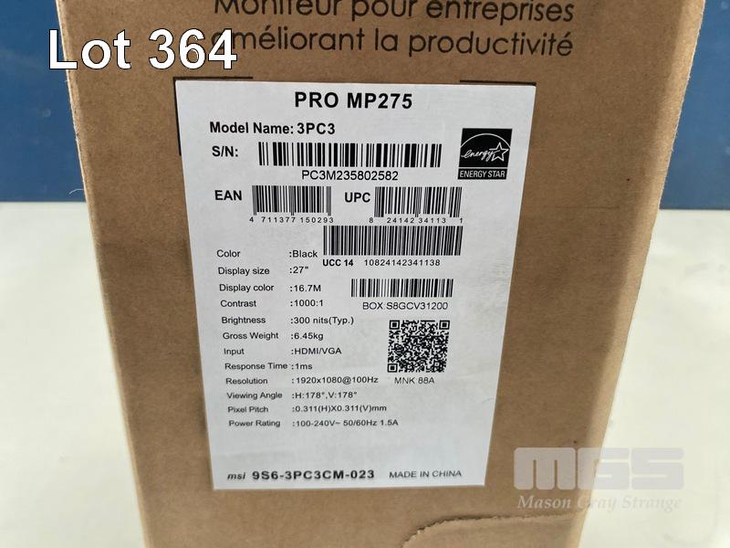 MONITOR, MSI PRO 27 INCH MP275 FHD 100HZ - BLACK, MON-MSI-MP275 (RRP $199) (BOXED) (SUBJECT TO INSURANCE CLAIM) S/N:PC3M235802582