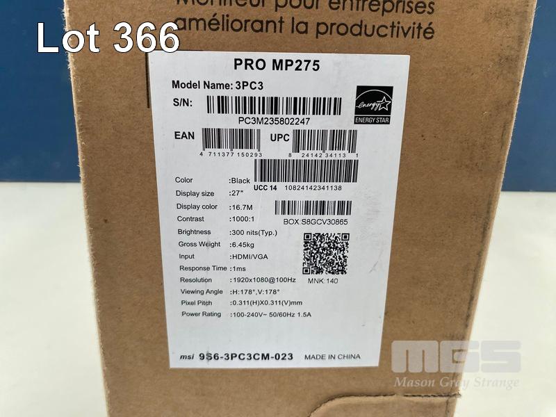 MONITOR, MSI PRO 27 INCH MP275 FHD 100HZ - BLACK, MON-MSI-MP275