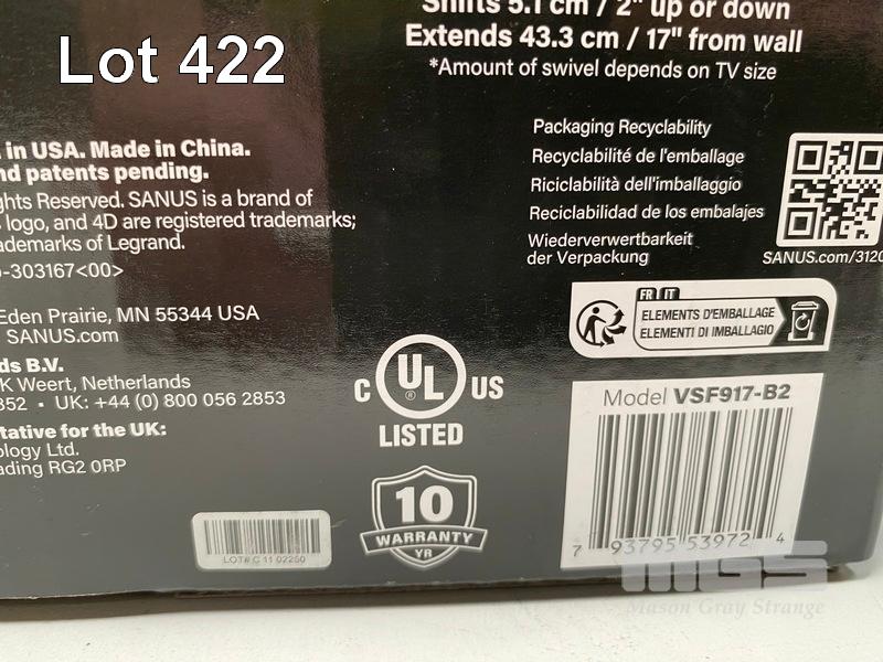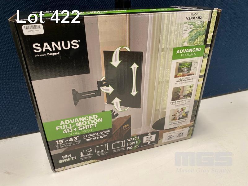 TV WALL MOUNT, SANUS ADVANCED FULL-MOTION 4D 19INCH TO 43INCH + SHIFT, VSF917-B2 (RRP $195) (BOXED) (SUBJECT TO INSURANCE CLAIM)