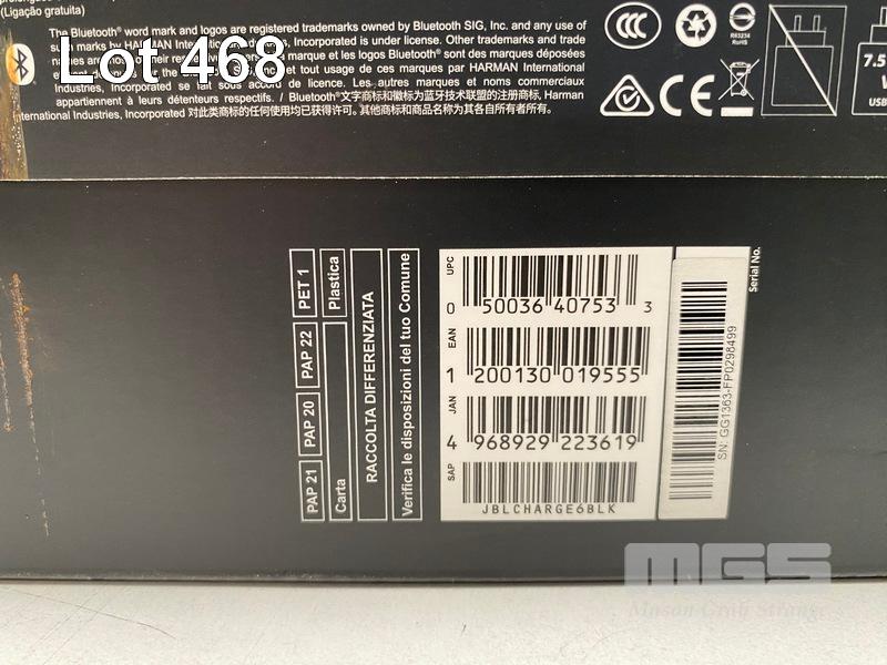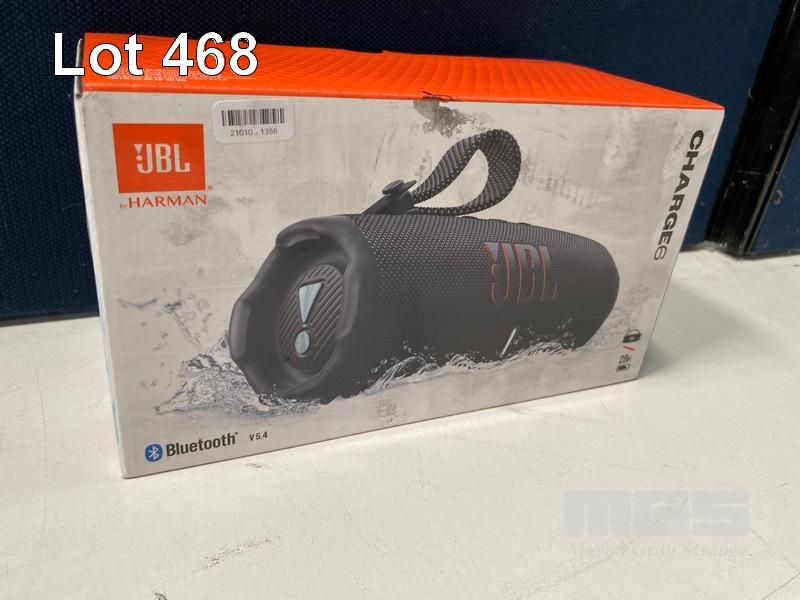 SPEAKER, JBL CHARGE 6 BLUETOOTH WITH STRAP - BLACK, JBLCHARGE6BLK (RRP $225) (BOXED) (SUBJECT TO INSURANCE CLAIM)