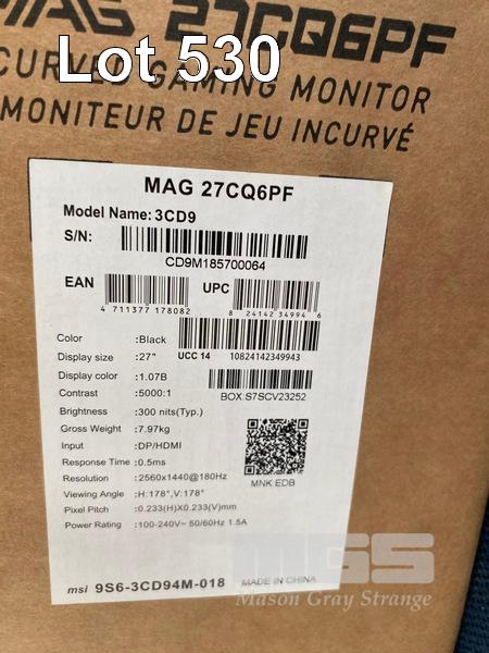 MONITOR, MSI 27 INCH 27C MAG27CQ6PF QHD 180HZ CURVED GAMING