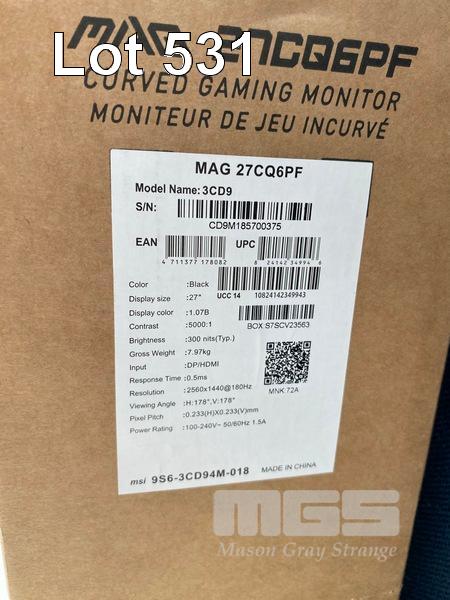MONITOR, MSI 27 INCH 27C MAG27CQ6PF QHD 180HZ CURVED GAMING