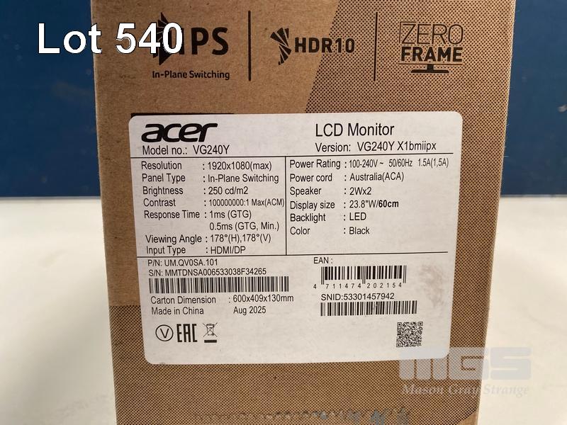 MONITOR, ACER NITRO 23.8-INCH VG240Y X1 FHD GAMING, UM.QV0SA.101 (RRP $219) (BOXED) (SUBJECT TO INSURANCE CLAIM) S/N:53301457942