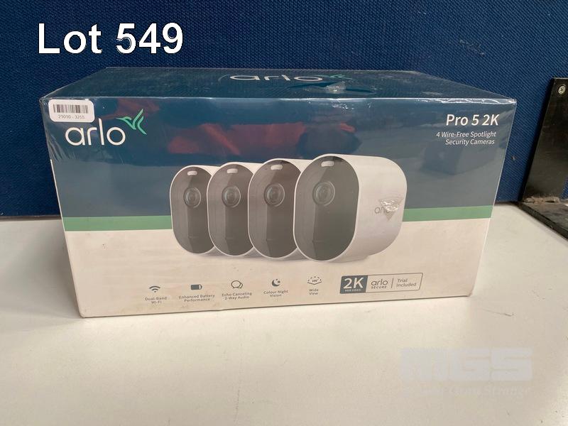 SECURITY CAMERA, ARLO PRO 5 2K SPOTLIGHT - 4 CAMERA PACK, VMC4460P-100AUS (RRP $648) (BOXED) (SUBJECT TO INSURANCE CLAIM) S/N:AEF4377LD15D7