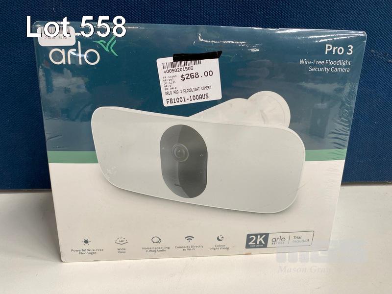 SECURITY CAMERA, ARLO PRO 3 WIRELESS FLOODLIGHT, FB1001-100AUS (RRP $268) (BOXED) (SUBJECT TO INSURANCE CLAIM) S/N:A7X5477PD00E1