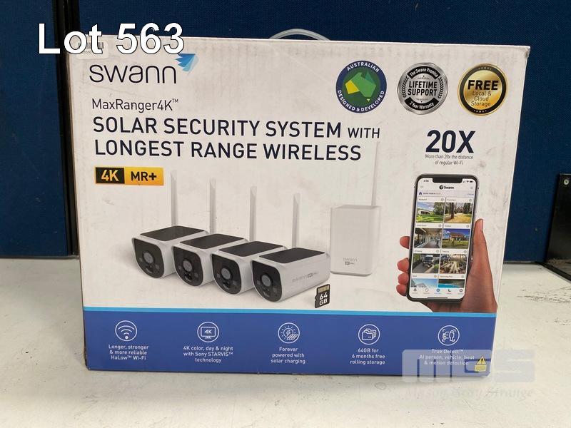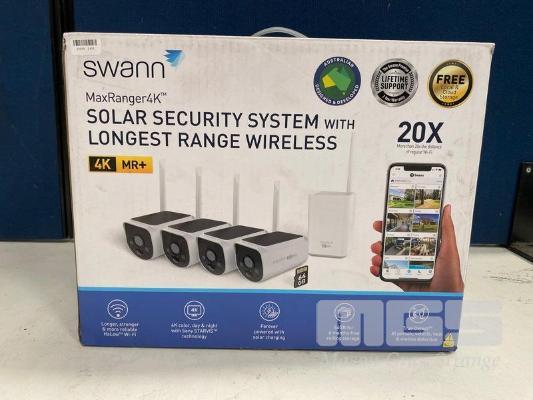 SECURITY CAMERA, SWANN MAXRANGER4K SOLAR WITH LONGEST RANGE WIRELESS - 4 PACK, SWNVK-MR4KSD4 (RRP $1,198) (BOXED) (SUBJECT TO INSURANCE CLAIM)