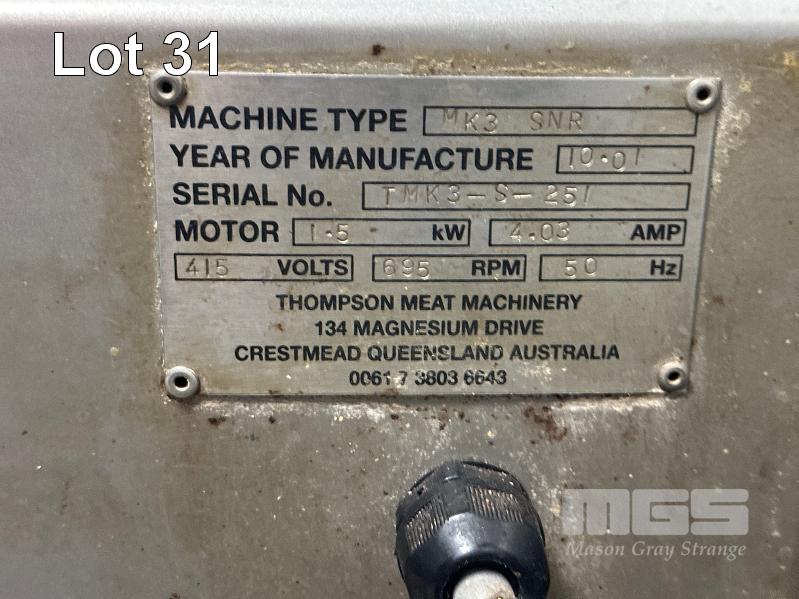 BANDSAW, THOMPSON TYPE: MK35NR DOM: 2001 1.5kw, 695 RPM 415V PLUG WITH SPARE BLADE