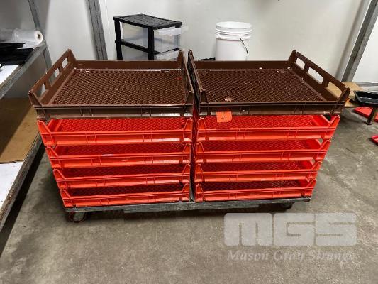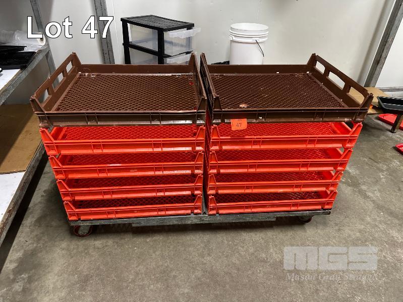 10 x STACKABLE BREAD TRAYS & MOBILE DOLLY