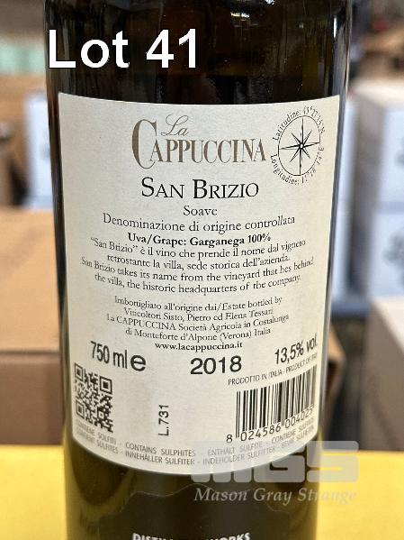 12 x BOTTLES 2018 LA CAPPUCCINA SAN BRIZIO SOAVE, 100% GARGANEGA, 750ml RRP: $46.00 PER BOTTLE