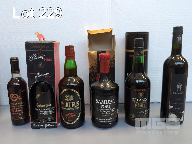 COLLECTABLE FORTIFIED WINES 1 X 1992 OLD PORT (375 ML - WEDDING WINE BOTTLED BY HENRY MARTIN WINES) 1 X CHATEAU YALDARA FINE OLD TAWNY PORT 1 X MT.RUFUS FINEST TAWNEY PORT 1 X SAMUEL PORT (SERIES 21) 1 X ORLANDO LIQUEUR PORT 1 X TWIN BAYS PENINSULAR PORT DIRECTORS BLEND (FLEURIEU)