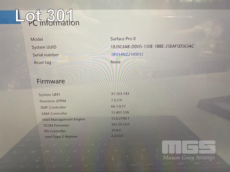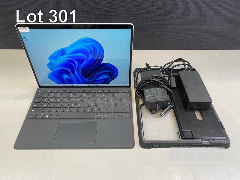 TABLET PC, MICROSOFT SURFACE PRO 8, MODEL 1982, CORE i5 1145G7 (11TH GEN) @ 2.6GHz, 16GB DDR4 RAM, 256GB NVMe M.2 SSD, 13" TOUCHSCREEN (2880x1920), INTEL IRIS Xe GRAPHICS, Wi-Fi, CELLULAR, BLUETOOTH, WINDOWS 11 PRO INSTALLED, KEYBOARD TYPE COVER, CASE, DOCKING STATION & POWER SUPPLY (NO TABLET POWER SUPPLY)