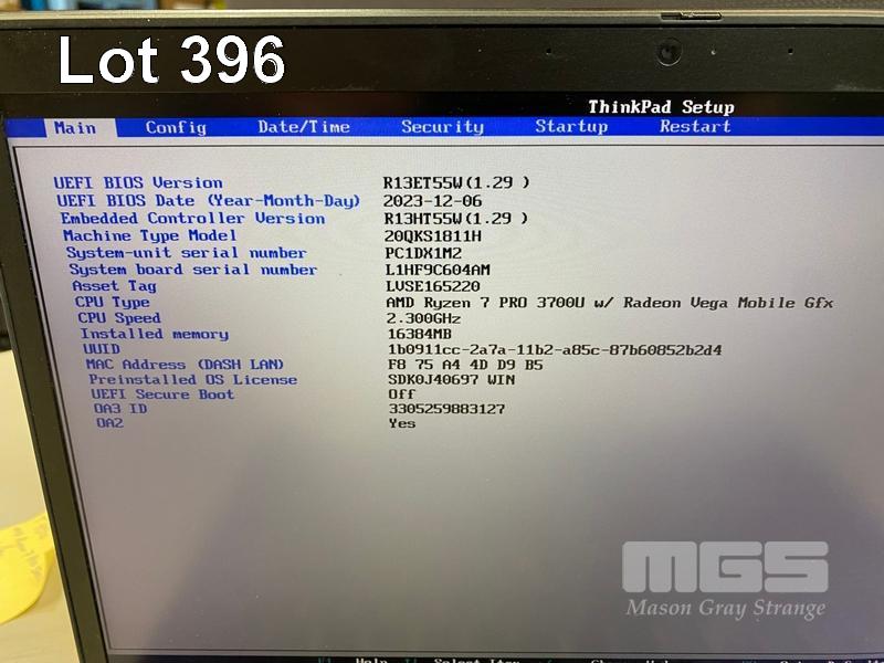LAPTOP, LENOVO THINKPAD T495s, TYPE 20QK, AMD RYZEN 7 PRO 3700U @ 2.3GHz, 16GB DDR RAM, 1TB NVMe M.2 SSD, 14" TOUCHSCREEN (1920x1080), Wi-Fi, BLUETOOTH, WINDOWS 11 PRO INSTALLED (NO USB-C POWER SUPPLY) (NOTE: MARKS ON SCREEN)