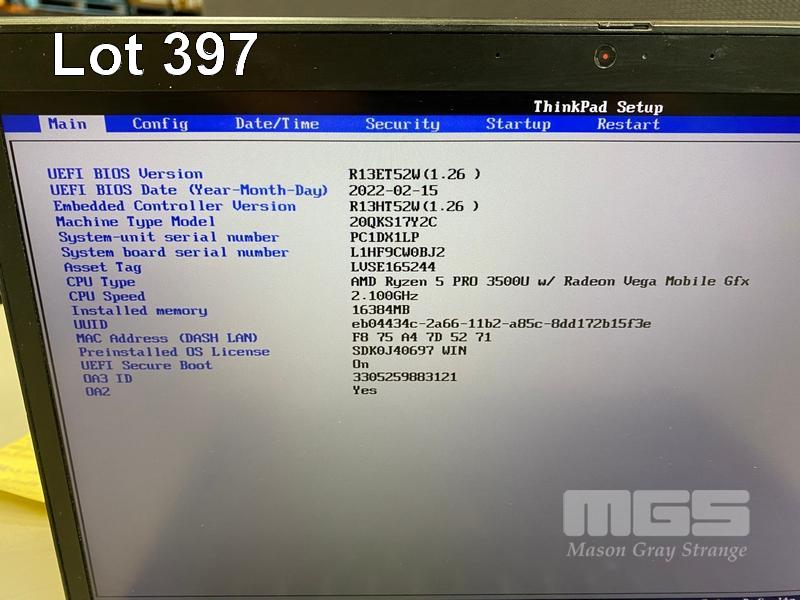 LAPTOP, LENOVO THINKPAD T495s, TYPE 20QK, AMD RYZEN 5 PRO 3500U @ 2.1GHz, 16GB DDR RAM, 512GB NVMe M.2 SSD, 14" TOUCHSCREEN (1920x1080), Wi-Fi, BLUETOOTH, WINDOWS 11 PRO INSTALLED (NO USB-C POWER SUPPLY) (NOTE: MARKS & SPOT ON SCREEN, MINOR DENT IN CASING)