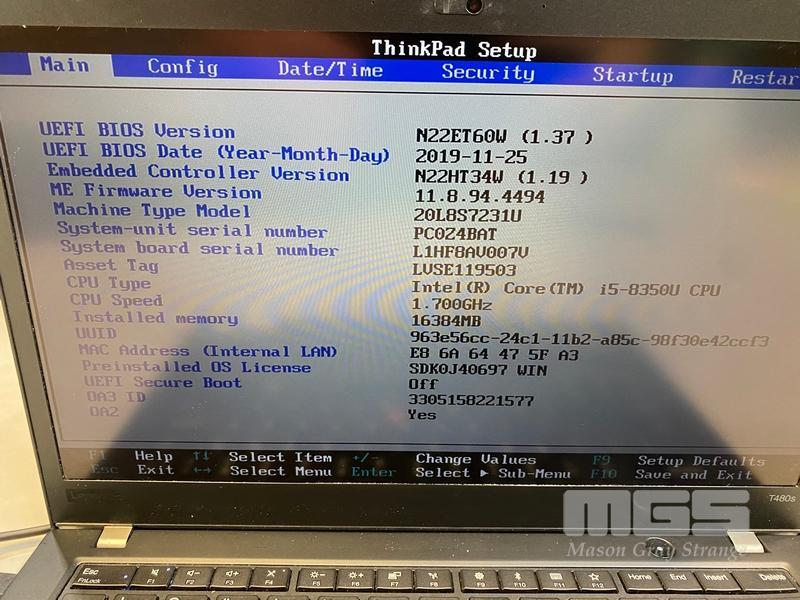 LAPTOP, LENOVO THINKPAD T480s, TYPE 20L8, CORE i5 8350U (8TH GEN) @ 1.7GHz, 16GB DDR4 RAM, 256GB NVMe M.2 SSD, 14" TOUCHSCREEN (1920x1080), INTEL HD VIDEO, Wi-Fi, BLUETOOTH, WINDOWS 11 PRO INSTALLED (NO USB-C POWER SUPPLY) (NOTE: BATTERY NOT CHARGING)