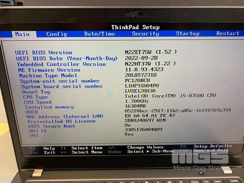 LAPTOP, LENOVO THINKPAD T480s, TYPE 20L8, CORE i5 8350U (8TH GEN) @ 1.7GHz, 16GB DDR4 RAM, 256GB NVMe M.2 SSD, 14" TOUCHSCREEN (1920x1080), INTEL HD VIDEO, Wi-Fi, BLUETOOTH, WINDOWS 11 PRO INSTALLED (NO USB-C POWER SUPPLY)