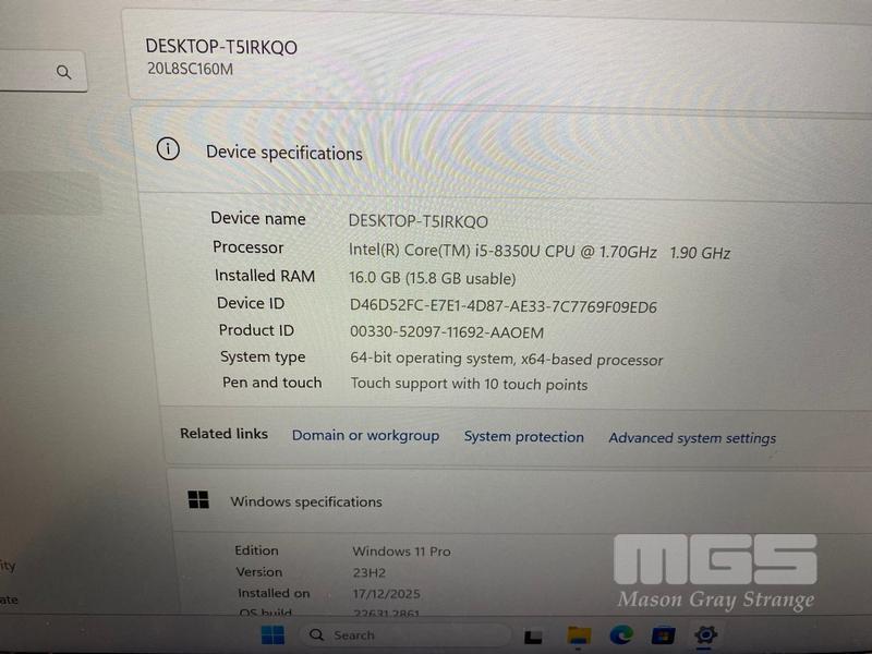 LAPTOP, LENOVO THINKPAD T480s, TYPE 20L8, CORE i5 8350U (8TH GEN) @ 1.7GHz, 16GB DDR4 RAM, 256GB NVMe M.2 SSD, 14" TOUCHSCREEN (1920x1080), INTEL HD VIDEO, Wi-Fi, BLUETOOTH, WINDOWS 11 PRO INSTALLED (NO USB-C POWER SUPPLY) (NOTE: SCRATCH ON SCREEN)