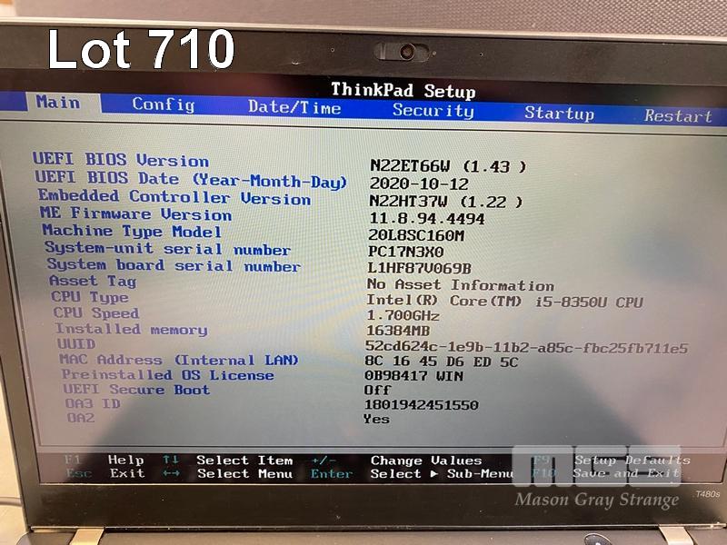 LAPTOP, LENOVO THINKPAD T480s, TYPE 20L8, CORE i5 8350U (8TH GEN) @ 1.7GHz, 16GB DDR4 RAM, 256GB NVMe M.2 SSD, 14" TOUCHSCREEN (1920x1080), INTEL HD VIDEO, Wi-Fi, BLUETOOTH, WINDOWS 11 PRO INSTALLED (NO USB-C POWER SUPPLY) (NOTE: BATTERY NOT CHARGING, MINOR MARKS ON SCREEN, MINOR CRACK LINE ON CASING)