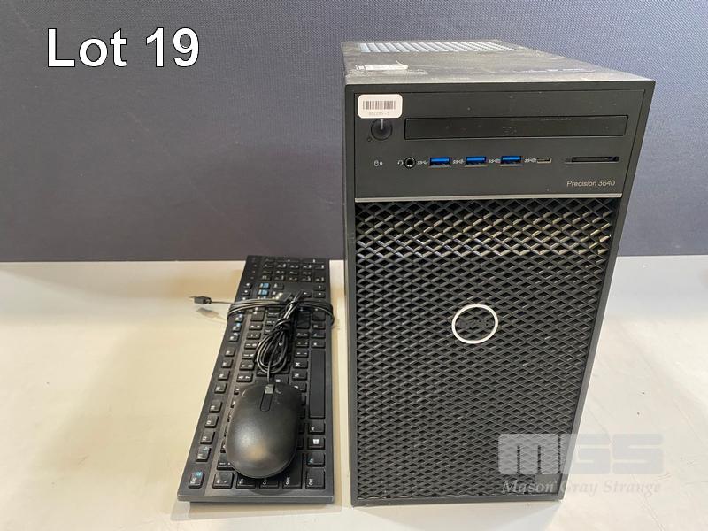 MINI-TOWER PC, DELL PRECISION 3640 WORKSTATION, CORE i7 10700 (10TH GEN) @ 2.9GHz, 16GB DDR4 RAM, 512GB NVMe M.2 SSD, 5GB NVIDIA QUADRO P2200 VIDEO (4DP), WINDOWS 11 PRO INSTALLED, KEYBOARD & MOUSE (NOTE: CASE MISSING PART "DELL" LOGO)