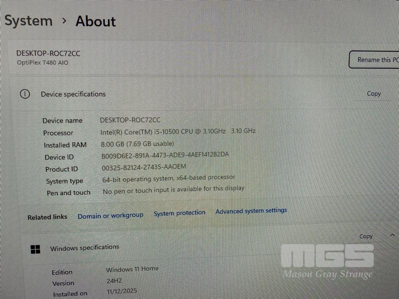 ALL-IN-ONE PC, DELL OPTIPLEX 7480, CORE i5 10500 (10TH GEN) @ 3.1GHz, 8GB DDR4 RAM, 512GB NVMe M.2 SSD, INBUILT 23.8" FHD WIDESCREEN (1920x1080), INTEL HD VIDEO, WEBCAM, 5 x USB, 1 x USB-C, Wi-Fi, BLUETOOTH, WINDOWS 11 HOME INSTALLED, KEYBOARD & MOUSE