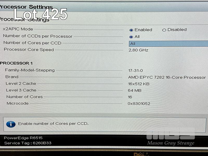 RACKMOUNT SERVER, DELL EMC POWEREDGE R6515, 1U, AMD EPYC 7282 16-CORE PROCESSOR @ 2.8GHz, 32GB ECC DDR4 RAM, 4 x 480GB SSD, 2 x PSU (NO CABLES) (NOTE: MESSAGE "CMOS BATTERY HAS FAILED")