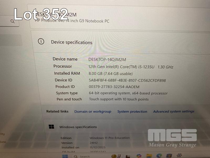 LAPTOP, HP PROBOOK 440 G9, CORE i5 1235U (12TH GEN) @ 1.3GHz, 8GB DDR4 RAM, 256GB NVMe M.2 SSD, 14" TOUCHSCREEN (1920x1080), INTEL UHD GRAPHICS, Wi-Fi, BLUETOOTH, WINDOWS 11 PRO EDUCATION INSTALLED & POWER SUPPLY