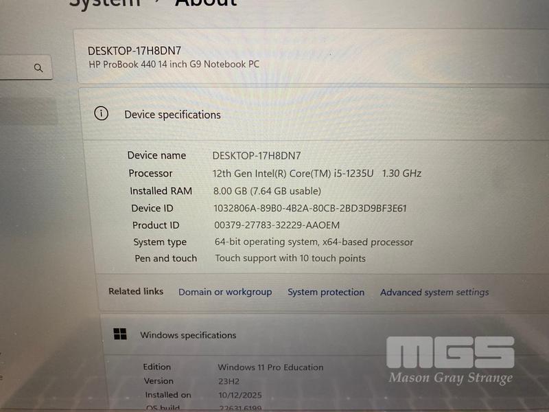 LAPTOP, HP PROBOOK 440 G9, CORE i5 1235U (12TH GEN) @ 1.3GHz, 8GB DDR4 RAM, 256GB NVMe M.2 SSD, 14" TOUCHSCREEN (1920x1080), INTEL UHD GRAPHICS, Wi-Fi, BLUETOOTH, WINDOWS 11 PRO EDUCATION INSTALLED & POWER SUPPLY (NOTE: MINOR DENTS TO CASING)