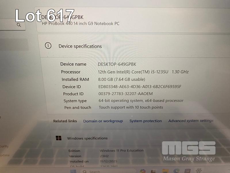 LAPTOP, HP PROBOOK 440 G9, CORE i5 1235U (12TH GEN) @ 1.3GHz, 8GB DDR4 RAM, 256GB NVMe M.2 SSD, 14" TOUCHSCREEN (1920x1080), INTEL UHD GRAPHICS, Wi-Fi, BLUETOOTH, WINDOWS 11 PRO EDUCATION INSTALLED & POWER SUPPLY (NOTE: DENTS TO CASING, MARKS ON SCREEN)