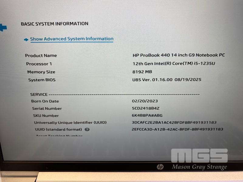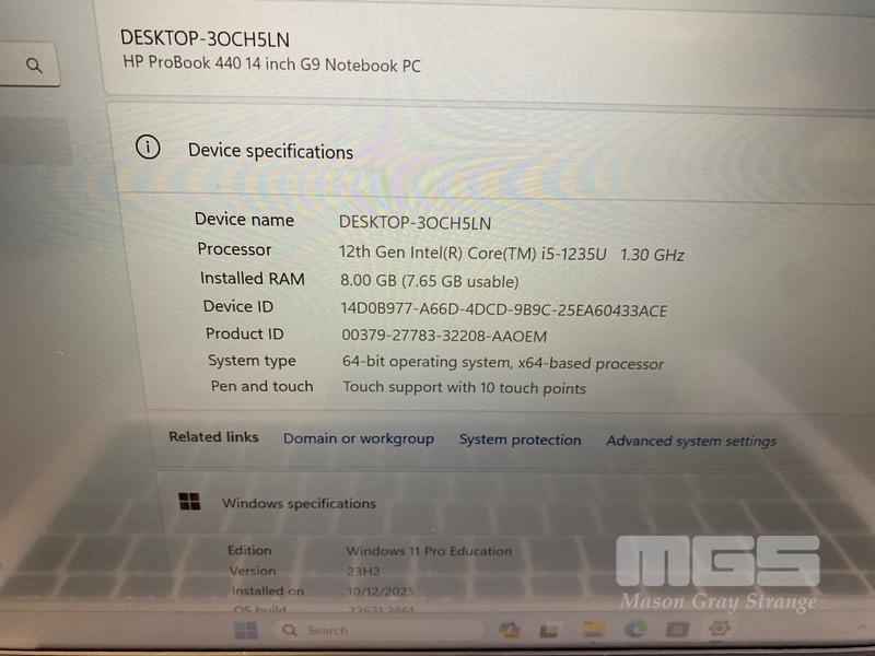 LAPTOP, HP PROBOOK 440 G9, CORE i5 1235U (12TH GEN) @ 1.3GHz, 8GB DDR4 RAM, 256GB NVMe M.2 SSD, 14" TOUCHSCREEN (1920x1080), INTEL UHD GRAPHICS, Wi-Fi, BLUETOOTH, WINDOWS 11 PRO EDUCATION INSTALLED & POWER SUPPLY (NOTE: MINOR DAMAGE TO CASING, MARKS ON SCREEN)