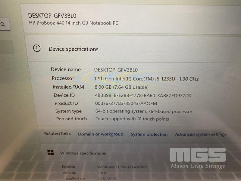 LAPTOP, HP PROBOOK 440 G9, CORE i5 1235U (12TH GEN) @ 1.3GHz, 8GB DDR4 RAM, 256GB NVMe M.2 SSD, 14" TOUCHSCREEN (1920x1080), INTEL UHD GRAPHICS, Wi-Fi, BLUETOOTH, WINDOWS 11 PRO EDUCATION INSTALLED & POWER SUPPLY (NOTE: MINOR DAMAGE TO CASING, MINOR MARKS ON SCREEN)