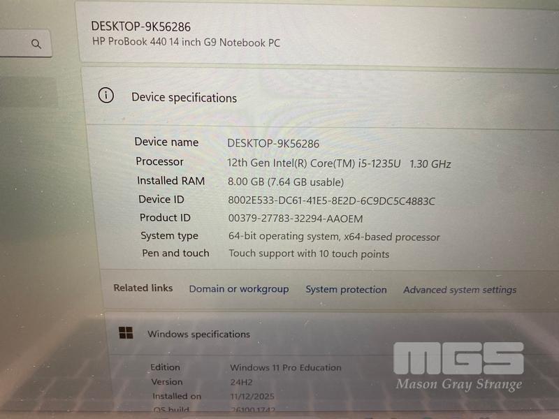 LAPTOP, HP PROBOOK 440 G9, CORE i5 1235U (12TH GEN) @ 1.3GHz, 8GB DDR4 RAM, 256GB NVMe M.2 SSD, 14" TOUCHSCREEN (1920x1080), INTEL UHD GRAPHICS, Wi-Fi, BLUETOOTH, WINDOWS 11 PRO EDUCATION INSTALLED & POWER SUPPLY (NOTE: DAMAGE TO CASING, DAMAGE TO USB PORT, MINOR MARKS ON SCREEN)