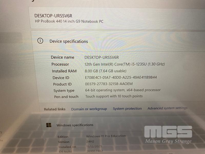 LAPTOP, HP PROBOOK 440 G9, CORE i5 1235U (12TH GEN) @ 1.3GHz, 8GB DDR4 RAM, 256GB NVMe M.2 SSD, 14" TOUCHSCREEN (1920x1080), INTEL UHD GRAPHICS, Wi-Fi, BLUETOOTH, WINDOWS 11 PRO EDUCATION INSTALLED & POWER SUPPLY (NOTE: MINOR MARKS ON SCREEN)