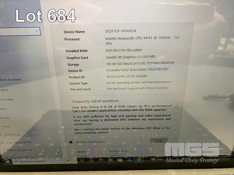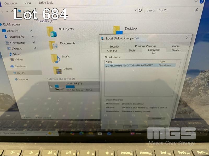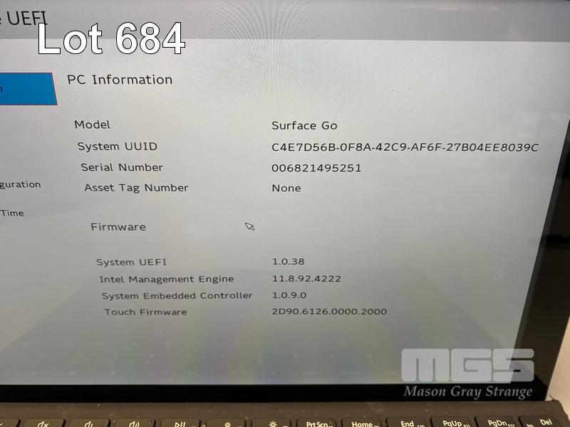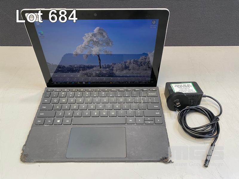 TABLET PC, MICROSOFT SURFACE GO, MODEL 1824, PENTIUM GOLD 4415Y @ 1.6GHz, 8GB DDR3 RAM, 128GB NVMe M.2 SSD, 10" TOUCHSCREEN (1800x1200), INTEL HD GRAPHICS 615, Wi-Fi, BLUETOOTH, WINDOWS 10 PRO INSTALLED, KEYBOARD TYPE COVER & POWER SUPPLY (NOTE: SCRATCHES ON SCREEN & CASING, KEYBOARD POOR CONDITION)