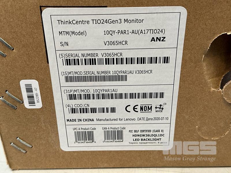 MONITOR, LENOVO THINKCENTRE TIO24Gen3 23.8" LED-BL LCD WIDESCREEN, MODEL 10QY (SEALED IN BOX)