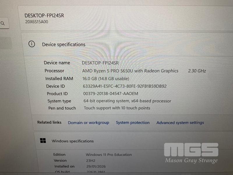 LAPTOP, LENOVO THINKPAD L14 Gen2, TYPE 20X6, AMD RYZEN 5 PRO 5650U @ 2.3GHz, 16GB DDR4 RAM, 256GB NVMe M.2 SSD, 14" TOUCHSCREEN (1920x1080), Wi-Fi, BLUETOOTH, WINDOWS 11 PRO EDUCATION INSTALLED (NO USB-C POWER SUPPLY) (NOTE: MINOR MARKS ON SCREEN)