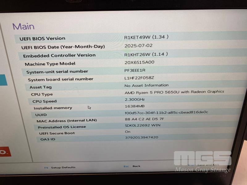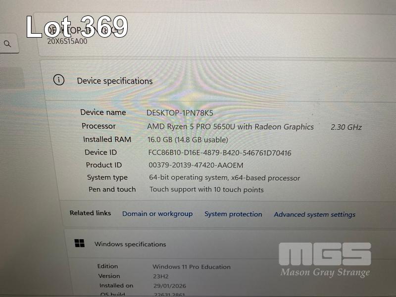 LAPTOP, LENOVO THINKPAD L14 Gen2, TYPE 20X6, AMD RYZEN 5 PRO 5650U @ 2.3GHz, 16GB DDR4 RAM, 256GB NVMe M.2 SSD, 14" TOUCHSCREEN (1920x1080), Wi-Fi, BLUETOOTH, WINDOWS 11 PRO EDUCATION INSTALLED (NO USB-C POWER SUPPLY) (NOTE: MARKS ON SCREEN)