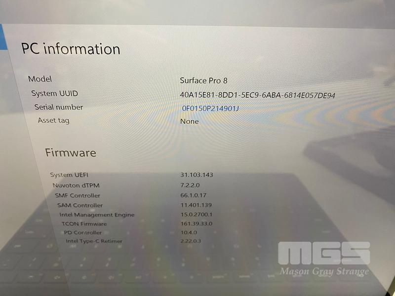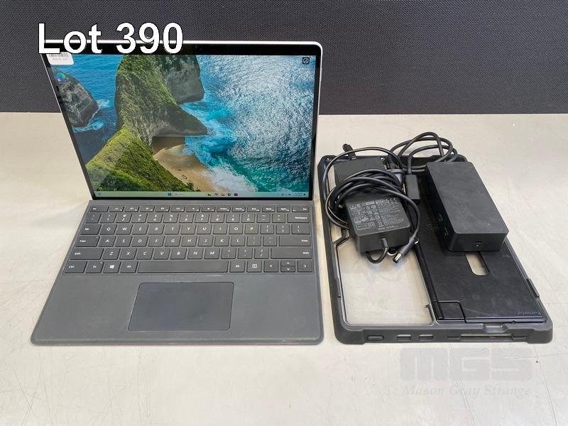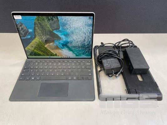 TABLET PC, MICROSOFT SURFACE PRO 8, MODEL 1982, CORE i5 1145G7 (11TH GEN) @ 2.6GHz, 16GB DDR4 RAM, 256GB NVMe M.2 SSD, 13" TOUCHSCREEN (2880x1920), INTEL IRIS Xe GRAPHICS, Wi-Fi, CELLULAR, BLUETOOTH, WINDOWS 11 PRO INSTALLED, KEYBOARD TYPE COVER, CASE, DOCKING STATION & POWER SUPPLY (NO TABLET POWER SUPPLY) (NOTE: MINOR SCRATCHES ON SCREEN)