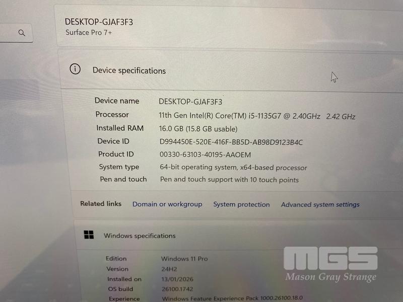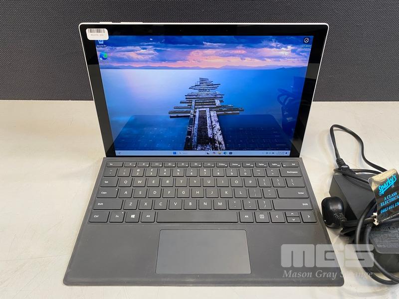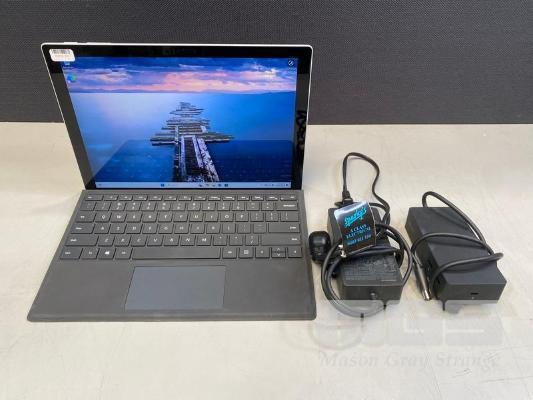 TABLET PC, MICROSOFT SURFACE PRO 7+, MODEL 1961, CORE i5 1135G7 (11TH GEN) @ 2.4GHz, 16GB DDR4 RAM, 256GB NVMe M.2 SSD, 12.3" TOUCHSCREEN (2736x1824), INTEL IRIS Xe GRAPHICS, Wi-Fi, CELLULAR, BLUETOOTH, WINDOWS 11 PRO INSTALLED, KEYBOARD TYPE COVER, DOCKING STATION & POWER SUPPLY (NO TABLET POWER SUPPLY) (NOTE: CRACK LINE ON SCREEN)