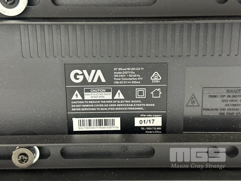 GVA 32" HD LED TV, MODEL G32TV15 WITH REMOTE (NOTE: NO STAND)