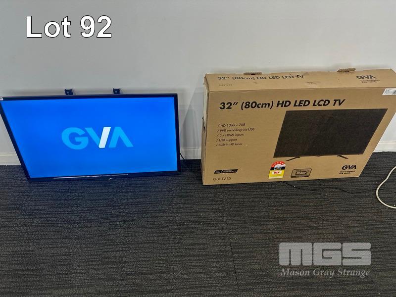 GVA 32" HD LED TV, MODEL G32TV15 (NOTE: NO REMOTE, NO STAND)