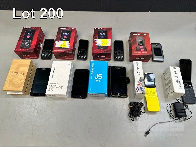QTY ASST MOBILE PHONES INC. - KONKA U7, KONKA FP1, SAMSUNG GALAXY S5, SAMSUNG GALAXY A5, SAMSUNG GALAXY J5 PRO, NOKIA 8110 4G, NOKIA 2720 FLIP (WITH CHARGERS)