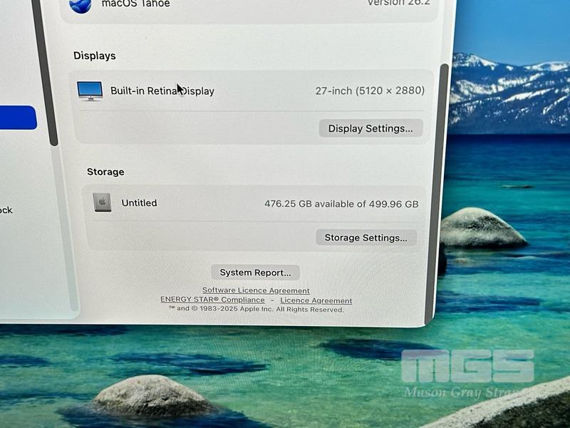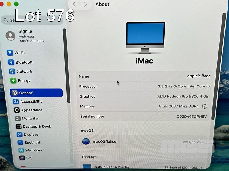 APPLE iMAC (A2115), CORE i5 10600 (10TH GEN) @ 3.3GHz, 8GB DDR4 RAM, 512GB NVMe M.2 SSD, BUILT-IN 27" RETINA 5K DISPLAY (5120x2880), 4GB RADEON PRO 5300 VIDEO, Wi-Fi, BLUETOOTH, MAC OS 26 INSTALLED, KEYBOARD & MOUSE