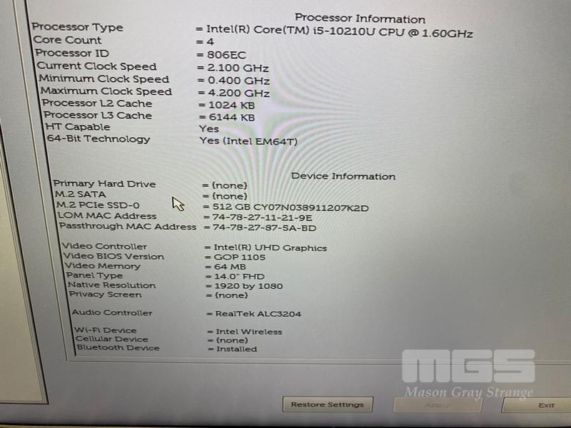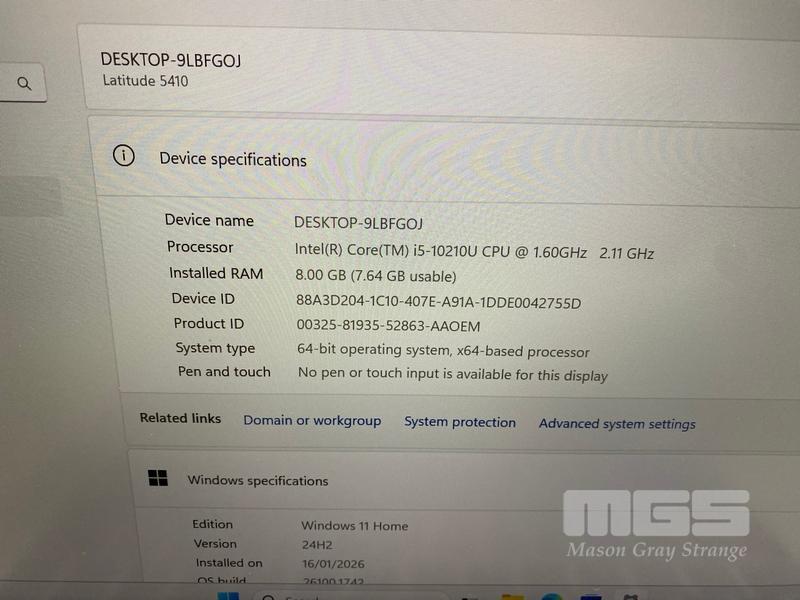 LAPTOP, DELL LATITUDE 5410, CORE i5 10210U (10TH GEN) @ 1.6GHz, 8GB DDR4 RAM, 512GB NVMe M.2 SSD, 14" WIDESCREEN (1920x1080), INTEL UHD GRAPHICS, Wi-Fi, BLUETOOTH, WINDOWS 11 HOME INSTALLED & POWER SUPPLY (NOTE: CASING PEELING, BATTERY NOT HOLDING CHARGE)