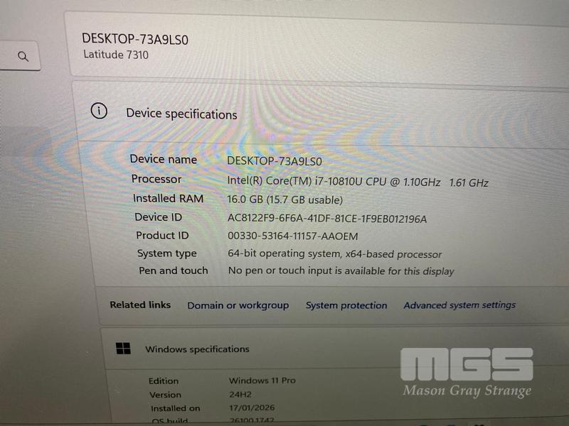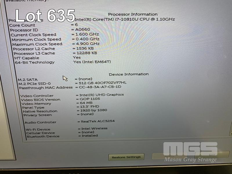 LAPTOP, DELL LATITUDE 7310, CORE i7 10810U (10TH GEN) @ 1.1GHz, 16GB DDR4 RAM, 512GB NVMe M.2 SSD, 13.3" WIDESCREEN (1920x1080), INTEL UHD GRAPHICS, Wi-Fi, BLUETOOTH, WINDOWS 11 PRO INSTALLED (NO USB-C POWER SUPPLY) (NOTE: SPOTS ON SCREEN, 1 x RUBBER PAD MISSING ON BOTTOM OF LAPTOP)