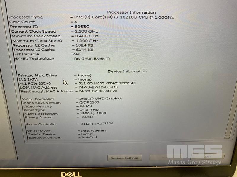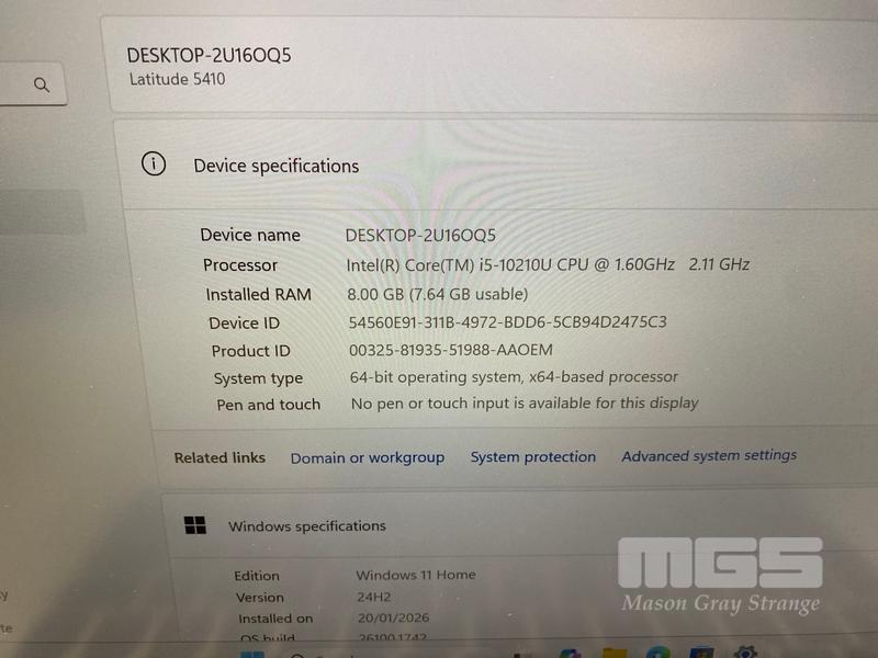 LAPTOP, DELL LATITUDE 5410, CORE i5 10210U (10TH GEN) @ 1.6GHz, 8GB DDR4 RAM, 512GB NVMe M.2 SSD, 14" WIDESCREEN (1920x1080), INTEL UHD GRAPHICS, Wi-Fi, BLUETOOTH, WINDOWS 11 HOME INSTALLED & POWER SUPPLY (NOTE: BATTERY NOT HOLDING CHARGE)