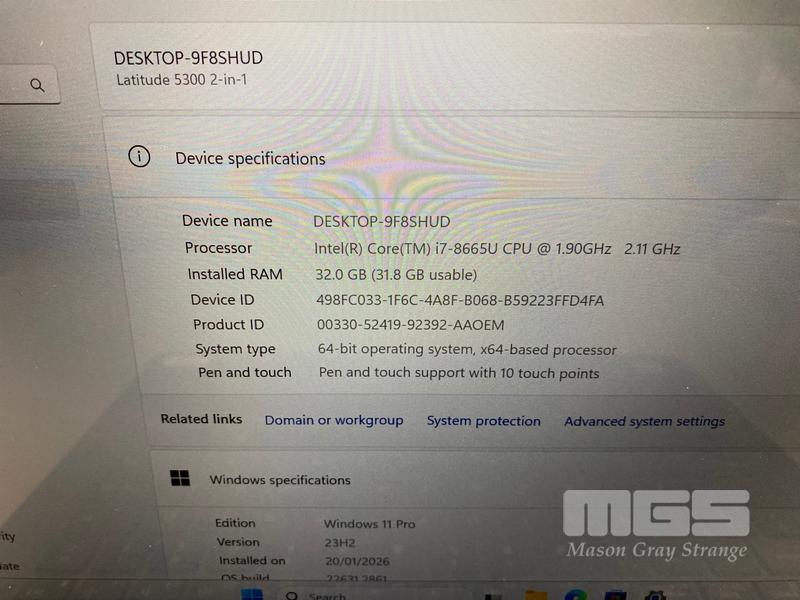 LAPTOP, DELL LATITUDE 5300 2-IN-1, CORE i7 8665U (8TH GEN) @ 1.9GHz, 32GB DDR4 RAM, 1TB NVMe M.2 SSD, 13.3" TOUCHSCREEN (1920x1080), INTEL UHD GRAPHICS 620, Wi-Fi, BLUETOOTH, WINDOWS 11 PRO INSTALLED & POWER SUPPLY (NOTE: BATTERY NOT HOLDING CHARGE, MARKS & BLEMISHES ON SCREEN)